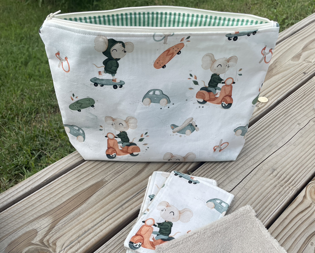 Une jolie trousse de toilette pour emporter les affaires de bébé.
